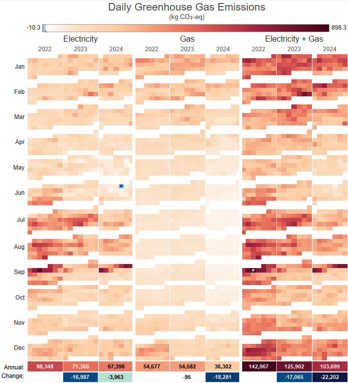 This refers to changes in greenhouse gas emissions associated with the net consumption of grid electricity and utility gas. In the case of electricity emissions, these changes are computed using hourly marginal emissions factors, specific to the local electrical utility provider, and take into account GHG emissions reduction credits that would be associated with potential net-exports of power back to the grid over specific hours. In the case of gas, these changes are computed using the constant emissions factor referenced previously.