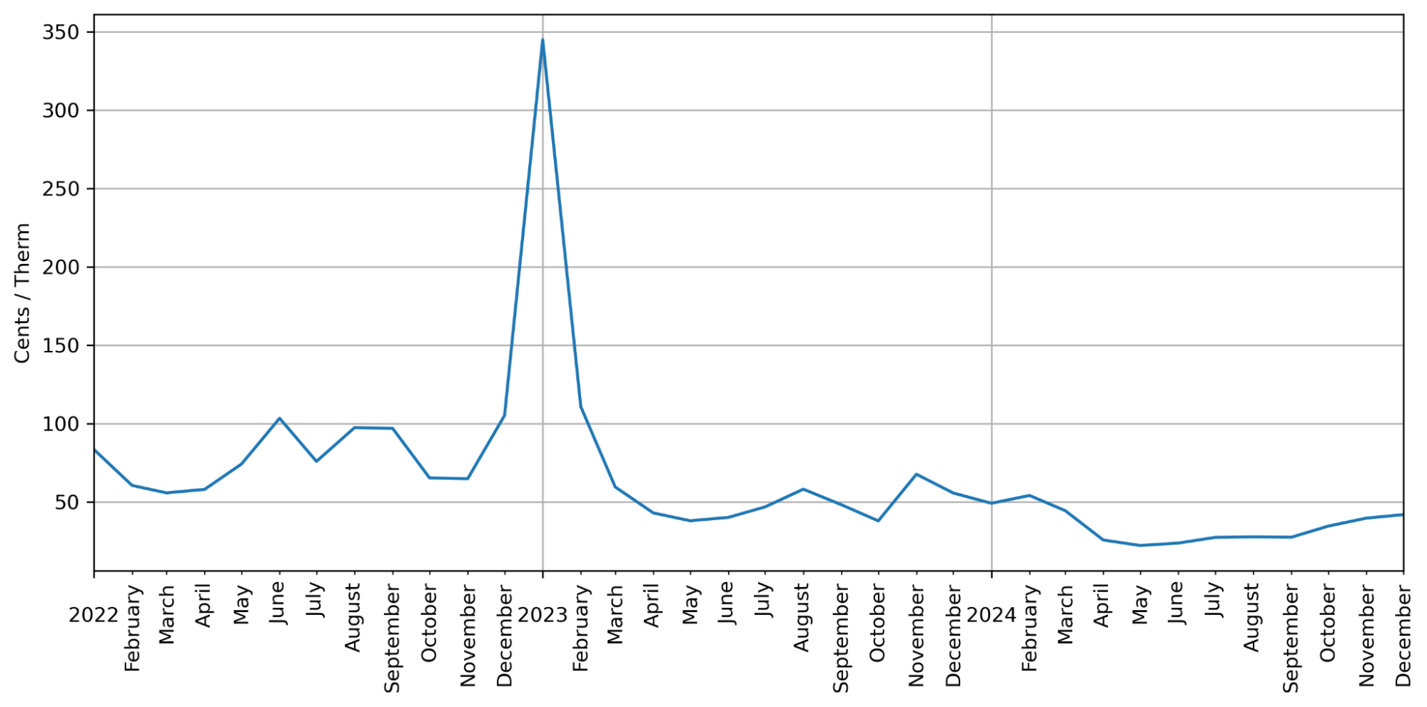 Data requested from SCG included 1-hour interval metered gas usage data and customer account attributes over a period over the same three year period (2022/01/02 - 2024/12/31).